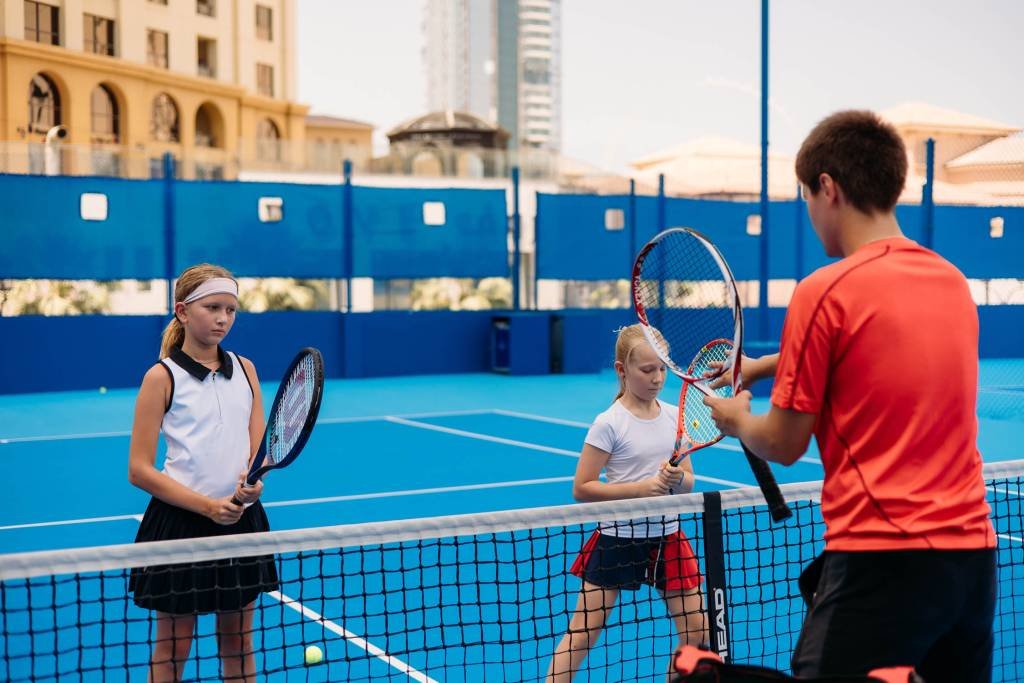 When kids are not the only one on court, there is less pressure, more motivation and the bonus of friendly rivalry. Plus, it helps them prepare for real match situations or doubles (eventually, why not?) – not just rallying with a coach.